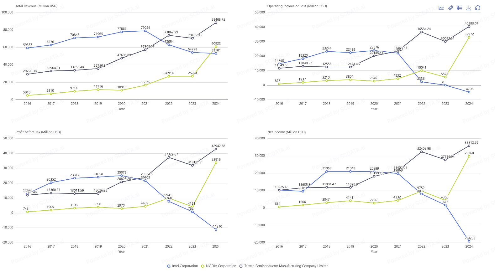 | TSMC (Taiwan Semiconductor Manufacturing Co.) | Intel Corporation | Nvidia | |