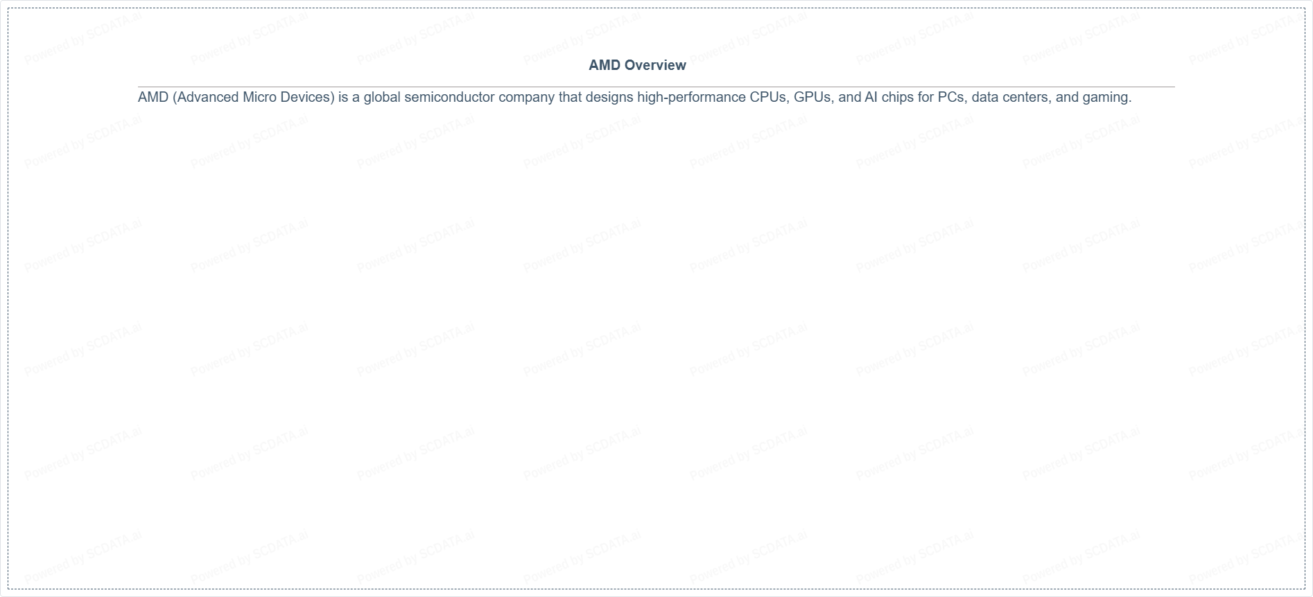 AMD (Advanced Micro Devices) is a global semiconductor company that designs high-performance CPUs, GPUs, and AI chips for PCs, data centers, and gaming.