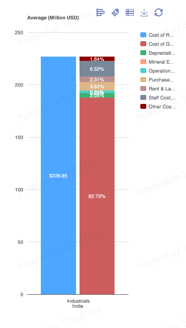 In the industrial sectors of the United States, China, and India, the costs of goods sold (COGS) constitute the most significant portion of revenue, while net income margins remain quite narrow. This means that even small improvements in supply chain efficiency can have an outsized impact of profitability. A 1% reduction in COGS can lead to a noticeable percentage increase in net income, especially in countries or industries where costs are high and margins are tight.