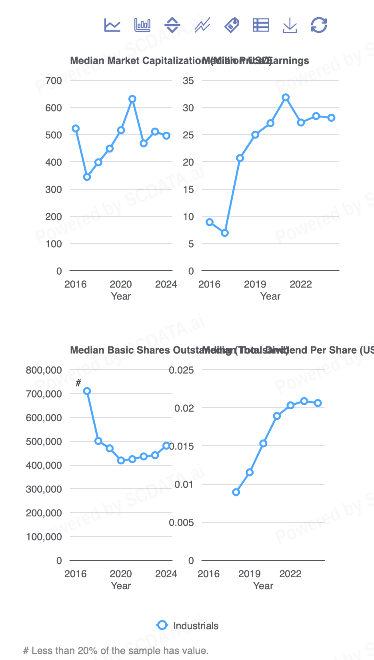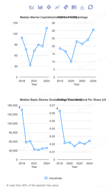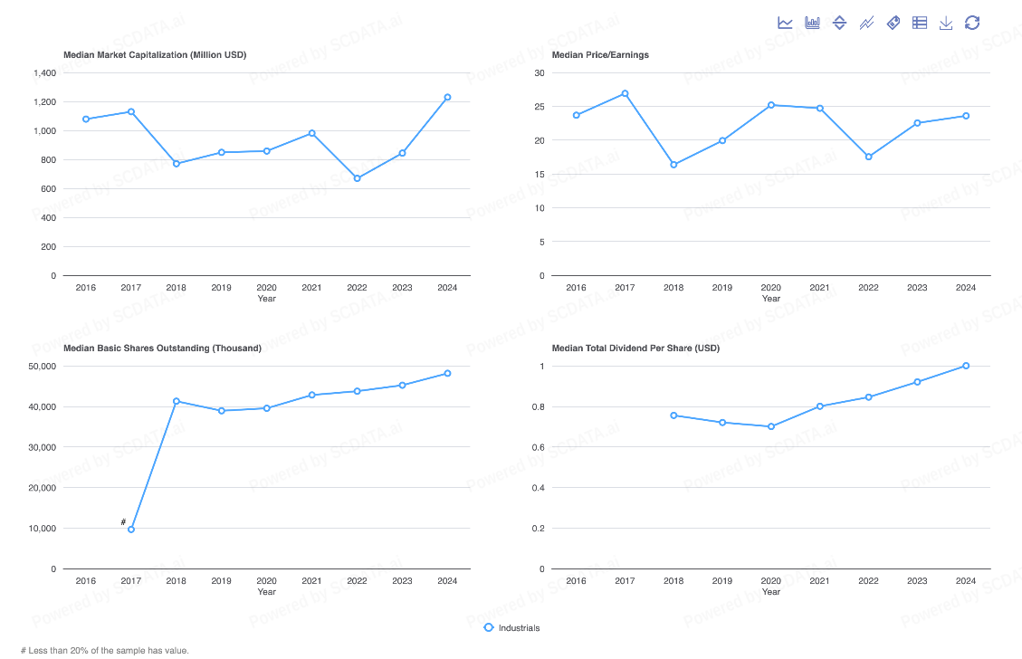 Across the Industrials sectors in United States, China, and India, market capitalization usually moves in the same direction as net income over time, which helps indicate a clear relationship between profitability and firm valuation. When companies generate higher net income, then the market cap typically increases as well, although the magnitude of this response varies across countries.