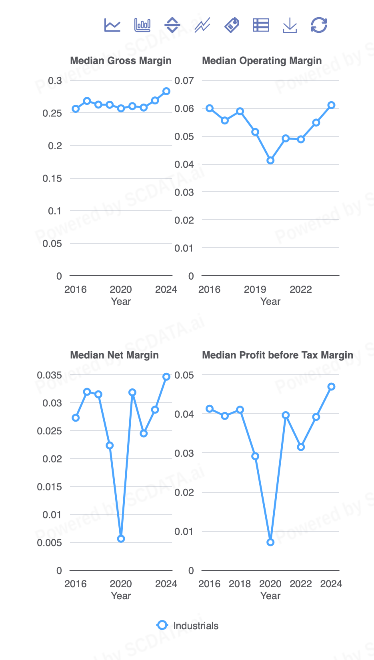 In practice, this relationship underscores why supply chain strategy is a key financial lever rather than just an operational concern. Reductions in COGS can come from improved supplier negotiations, more efficient transportation networks, automation, or better inventory management. Since these changes directly reduce operating costs without requiring additional revenue growth, they tend to translate almost one-for-one into higher profitability. This dynamic becomes important in capital-intensive industrial sectors, where margins are narrow and revenue and growth along may not be sufficient enough to significantly improve financial performance.