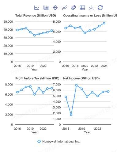 Honeywell shows a similar pattern to that of Caterpillars, though slightly less tight than theirs. Net income still matters a lot, but its diversified business model means valuation is not driven by just earnings alone. Even so, the overall trend shows that higher profitability generally leads to higher market value.
