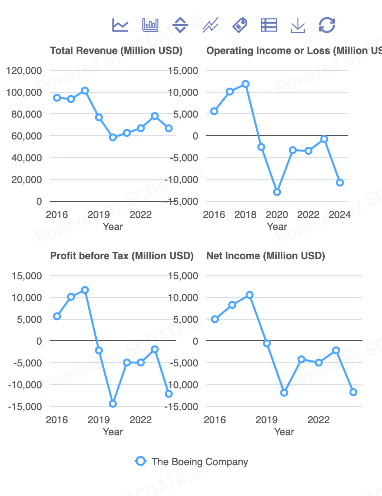 Boeing stands out as the outlier, as its market capitalization remains relatively high during periods of weak or negative net income. This disconnect can be linked to a series of major safety and regulatory issues that significantly impact short-term earning but did not eliminate long-term demand for the company's products. Investor valuation appears to be drive more by expectations of recovery and future contracts than by current profitability in the market.