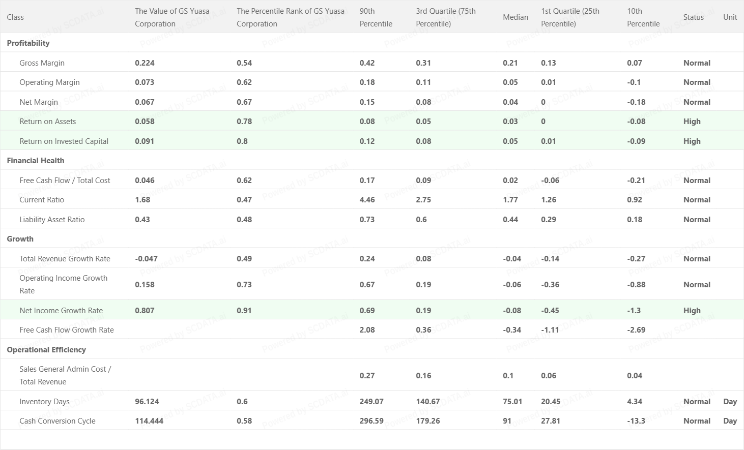 GS Yuasa: Net Income = 6.79%