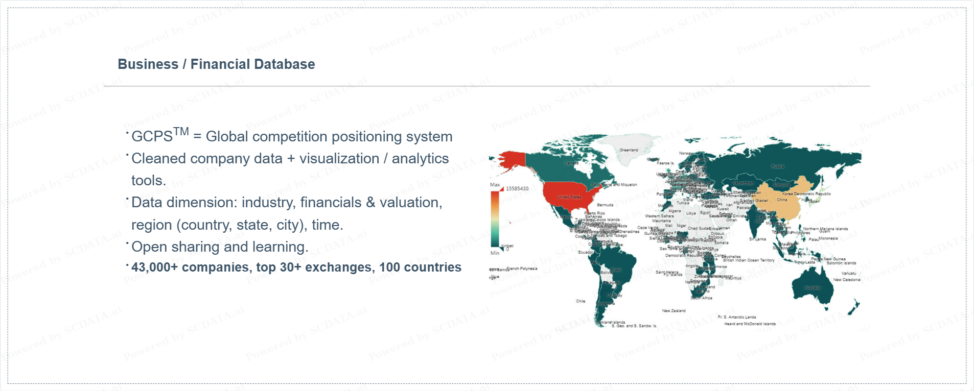 Let’s first open enterprise distribution. On the left panel, you can select analysis module, industry, country or region, org form and year. Analysis module: (1) “Enterprise Distribution” includes a broad range of KPIs frequently used, (2) choose your own: you can customize KPIs (5 categories) to show on the map. When you select industry, pay attention to the levels: the higher the level #, the more granular the industry classification is, for instance, industrials – transportation - airlines. After selecting the level, you can search for industries. Next you can select region / country: ~100, search. Year. Then, click on start analysis, a map is now generated. On the right panel, you can select various KPIs to show on the map. On the top of the right panel, you can select graph type, show or hide label, open or close right panel, and download picture. Finally, you can save your analysis here.
