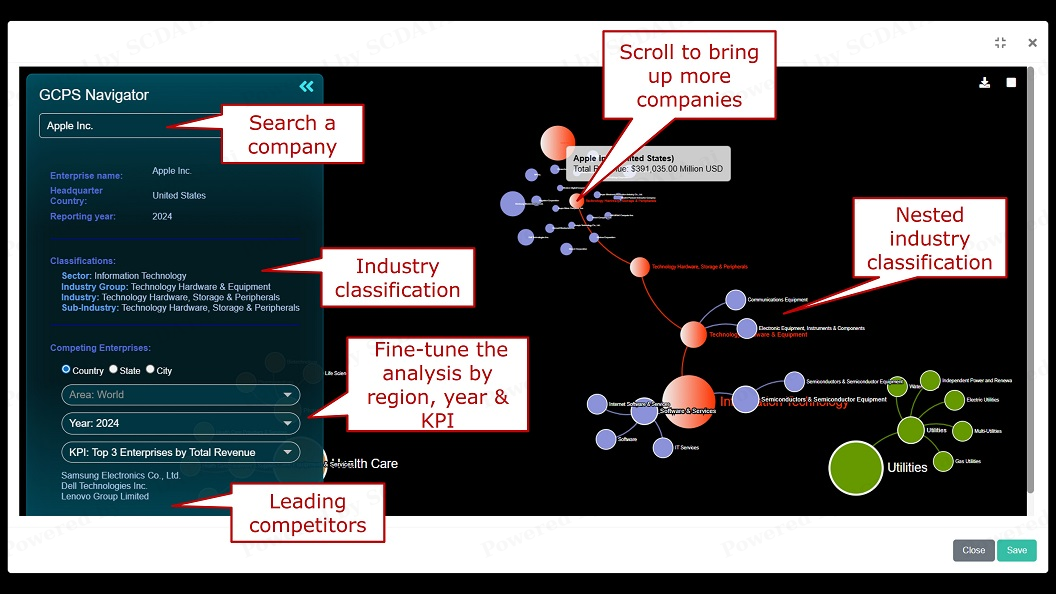 Map out a company’s upstream and downstream industries in the supply chain to identify its potential suppliers and customers. … We can illustrate supply chain mapping by Apple. Apple is classified as technology hardware. You can see its up or down stream industries. You can fine tune the analysis by region, year and KPI.